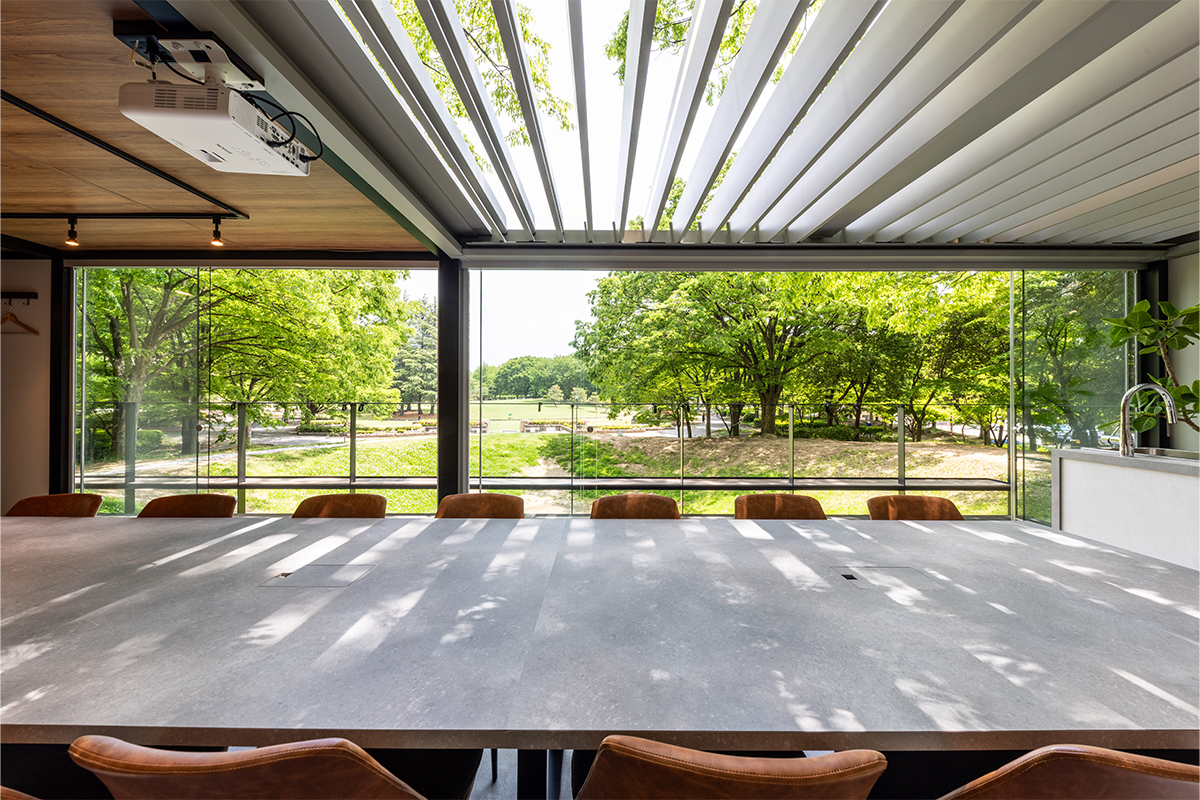 ガラス張りの建物は、周囲の⾃然と調和し⼼地よい創造的な空間をご提供します。